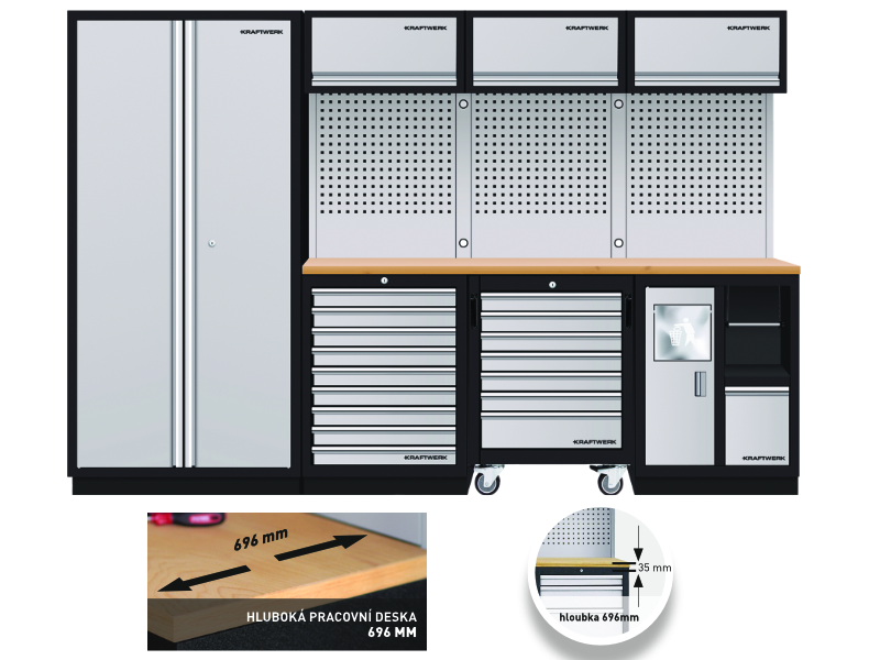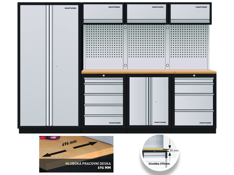 | Název | AKCE KW Dílenský stůl 2040x488x2000mm, 2 dveře + 13 zásuvek + záda, deska Multiplex MOBILIO GREY dílenský nábytek | Aku šroubovák vrtací 10mm Li-Ion 20V/2,0Ah SHARE - kufr FESTA | Pilka oblouková 800mm FESTA | Topidlo elektrické 3300W | |